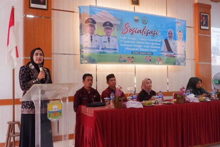 Muaro Jambi – Bunda PAUD Kabupaten Muaro Jambi, Ririn Novianty BBS, menggelar kegiatan sosialisasi program wajib belajar prasekolah di Desa Talang Bukit, Kecamatan Bahar Utara, pada Kamis pagi (26/06/2025). Kegiatan ini berlangsung di Aula Kantor Camat Bahar Utara, dihadiri oleh para Bunda PAUD desa se-Kecamatan Bahar Utara serta pemangku kepentingan terkait dari berbagai unsur.